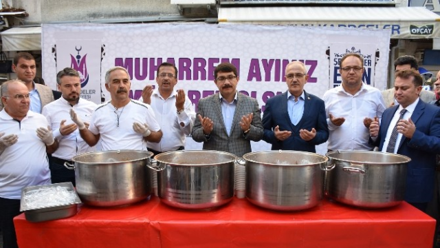 Muharrem Ayı nedeni ile her gün farklı bir mahallede aşure ikramı yapan Şehzadeler Belediyesi, Alaybey Pazaryeri önünde vatandaşlara 2 bin kişilik aşure ikramında bulundu