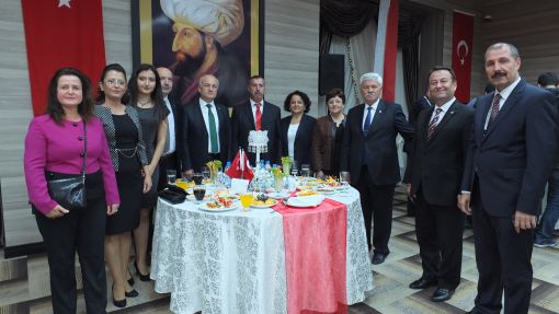 Manisa'da 29 Ekim Cumhuriyet Bayramı kutlanmaya devam ediyor. Vali Mustafa Hakan Güvençer ve eşi Dilek Güvençer'ile Manisa Polisevi'nde 29 Ekim Resepsiyonu'na ev sahipliği yapıyor. Vali Güvençer ve eşi konukları kapıda karşıladı. Polisevi'nde düzenlenen resepsiyona Manisa Büyükşehir Belediyesi Başkanı Cengiz Ergün ve eşi, Manisa İl Emniyet Müdürü Fevzi Bilgiç, Şehzadeler Belediye Başkanı Ömer Faruk Çelik, Celal Bayar Üniversitesi Rektörü Kemal Çelebi, Yunusemre Belediye Başkan Yardımcısı Şule Uygur ve eşi Radyo Hiraş'ın sahibi Rıfat Uygur, Şehzadeler Kaymakamı ve Yunusemre Kaymakam Vekili İsmail Çorumluoğlu, AK Parti Manisa İl Başkanı Zülfikar Gürcan, CHP Manisa İl Başkanı Halil Tokul, MHP Manisa İl Başkanı Erkan Öztürk, Askeri Erkan, Tugay Komutanı Şefik Güvenç ve eşi Ayşe Güvenç ayrıca oda başkanları, İş adamları ve gazeteciler katıldı. Resepsiyonda 'Cumhuriyet Pastası' kesildi ve hep bir ağızdan 10. Yıl Marşı'nı söylediler Manisa'da Denge Gazetesi: