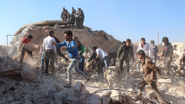 Saldırıda 7 evin tamamen yıkıldığını ifade eden Ensar, ''Rus uçağının bombaladığı Takad beldesinde ekiplerimiz enkaz altında kalanlara ağır iş makineleri kullanarak ulaşmaya çalışıyor. Enkaz altında kaç kişinin kaldığını bilemiyoruz.'' dedi.
