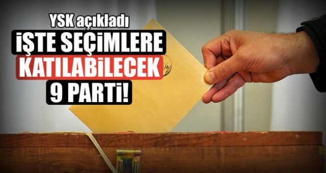 YSK'nın Resmi Gazete'de yayımlanan kararında, 298 sayılı Seçimlerin Temel Hükümleri ve Seçmen Kütükleri Hakkında Kanun'un 14. maddesinin 11. bendi ile 2820 sayılı Siyasi Partiler Kanunu'nun 20. ve 36. maddelerine göre 1 Ocak'tan en az 6 ay öncesi itibarıyla illerin en az yarısında teşkilat kurdukları ve büyük kongrelerini yaptıkları saptanan 9 partinin seçimlere katılma yeterliliği bulunduğu bildirildi.