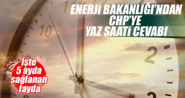 Enerji ve Tabii Kaynaklar Bakanlığı'ndan CHP'nin yaz saati uygulamasına ilişkin bilgi edinme başvurusuna gönderilen yanıtta, "Yapılan çalışmalar neticesinde, yaz saati uygulaması tasarruf getirmiştir. Uygulamanın 5 ay boyunca sürdürülmesi ile mesai saatleri için daha fazla aydınlık sağlandığı tespiti elde edilmiştir. Özellikle İç Anadolu ve Doğu bölgelerinde akşam havanın geç kararması ve tüm ülke genelinde iş çıkışlarının aydınlıkta gerçekleşmesinden dolayı asayiş açısından olumlu etki sağlanmıştır" denildi.
