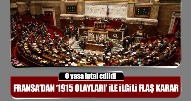 Fransa Anayasa Mahkemesi, 1915 olaylarına ilişkin Ermeni iddialarını da kapsayabilecek şekilde "bazı suçların reddinin suç sayılmasına" ilişkin yasanın ilgili hükmünü iptal ettiAnayasa Mahkemesi'nin kararında, geçen yıl sonunda yasalaşan tasarının "zaten var olan nefrete teşvikle ilgili yasaların yanında gerekli olmadığı" vurgulandı. Kararda, "Bu yasa, işlendiği zaman suç teşkil etmeyen olaylar hakkında yorumda bulunmayı cezalandırma yolu açıyor. Aynı zamanda yasa normalde tarihi tartışmalarla kararlaştırılması gereken olay ve ifadelerin yasallığı konusunda belirsizliğe neden oluyor. Dolayısıyla bu yasa, ifade özgürlüğüne gereksiz ve orantısız bir saldırıdır." denildi.