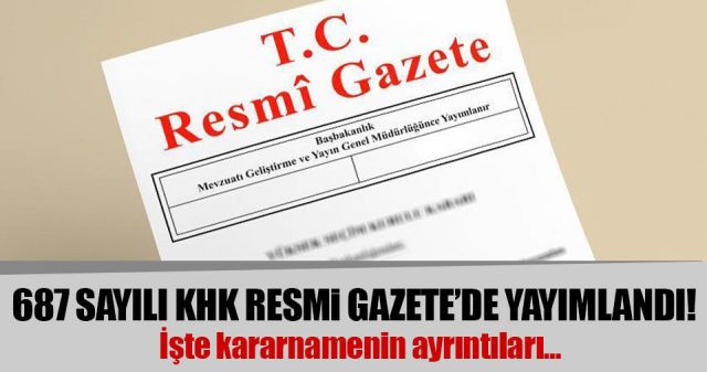 687 Sayılı Olağanüstü hal kapsamında bazı düzenlemeler yapılması Hakkında Kanun Hükmünde Kararname Resmi Gazetenin bugünkü sayısında yayımlandı.