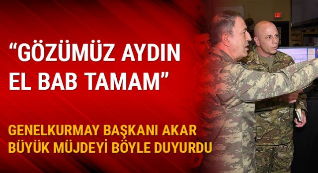 Cumhurbaşkanı Erdoğan'ın Körfez turuna katılan Genelkurmay Başkanı Akar, El Bab müjdesini Katar'ın başkenti Doha'da verdi. Akar, "Gözümüz aydın, El Bab operasyonu bitti" dedi.