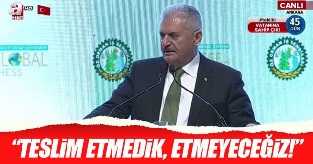 Halka rağmen ortaya çıkan bu karanlık yapılar diz çökmeye mahkumdur. O gece darbecilerin ilk hedefi hem Cumhurbaşkanımızı alaşağı etmek, seçilmiş hükümeti devirmek, parlamentoyu kapatmak. Şükürler olsun ki, bunu başaramadılar. Milletine ve ordusuna layık bir Cumhurbaşkanı olarak, hükümet olarak darbecilere milletimizle omuz omuza durarak karşı koyduk, darbecilere darbeyi vurduk. FETÖ'cü hainler halktan gazbettikleri uçak. helikopter ve tankları milli iradenin merkezi Meclis'in tepesinden bombalar yağdırdılar. O gece bombalara rağmen milletvekillerimiz Meclis'ten ayrılmadılar. Bu alçaklığa karşı kahramanca direndiler.