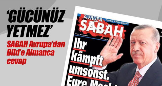 Bild gazetesi ve Alman medyası uzun zamandır Türkiye ve Cumhurbaşkanı Erdoğan ile ailesini hedef alıyordu. Referandum sürecinde daha da çirkinleşen Bild'in manşetlerine SABAH Avrupa manşetiyle cevap vererek 'iftiralardan korkmadığını' haykırdı.