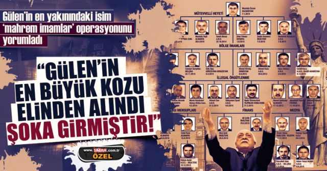 Dünkü mahrem imamlar operasyonunu haber alan hain Gülen şoktan şoka girmiştir. Çevresindekiler şekeri artmasın, kalbi teklemesin diye duyurmamaya çalışsalar da Gülen'in birden fazla bilgi kaynağı vardır. Bahar gelecek güzel şeyler olacak diyerek insanları kandıran ve itibarı iki paralık olan Gülen'in şimdi ne söyleyeceğini bütün FETÖ üyeleri merak ediyordur.