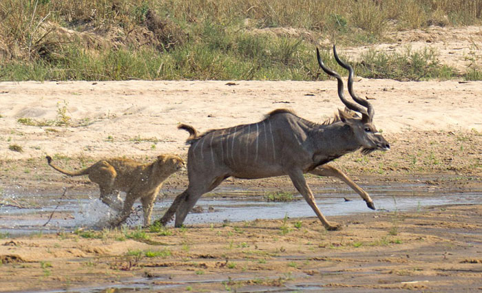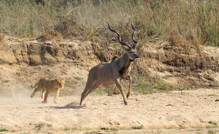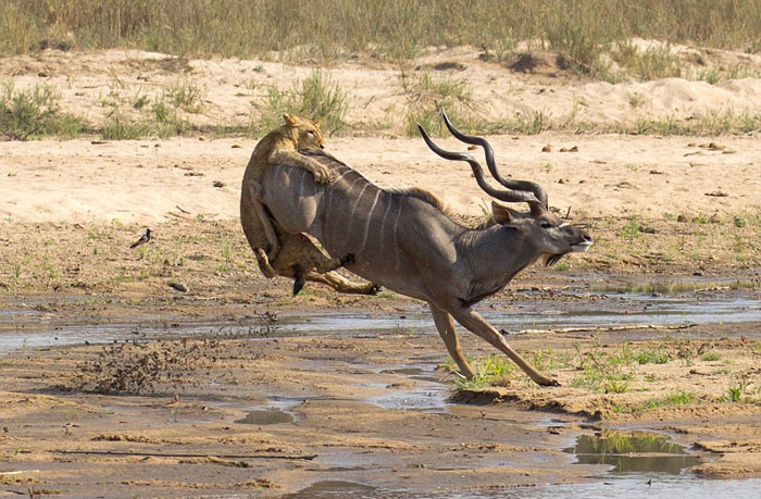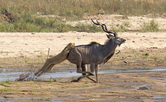 Antilop ise pes etmeye niyetli değildi ve aslandan kaçmak için sıçradı.