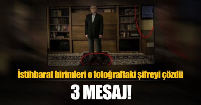 FETÖ elebaşısı Fethullah Gülen'in 15 Temmuz darbe girişiminin yıldönümünde Amerikan Wall Street Journal gazetesi'ne verdiği röportajında kullanılan fotoğrafın, örgüte şifreli mesajlar içerdiği tespit edildi. Gazete Habertürk'ten Fevzi Çakır'ın haberine göre Türk istihbarat birimleri, bununla ilgili çalışma yürüterek fotoğrafın şifrelerini çözdü. FETÖ'nün önceki mesajları da dikkate alınarak çözümlenen şifrelerde, Gülen'in fotoğrafla 3 mesaj ilettiği belirlendi.