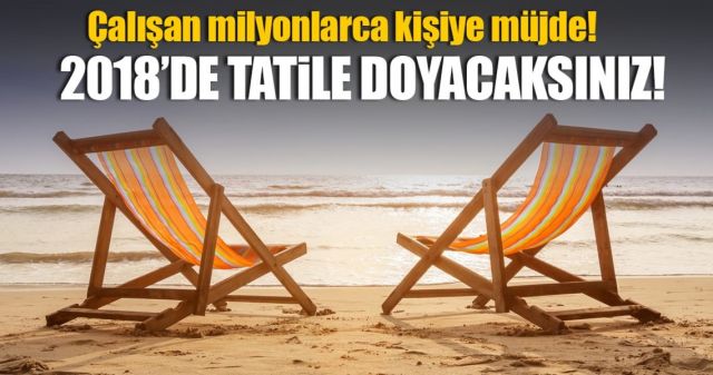2018'de hafta sonu tatili 104 gün olacak. Hafta sonuna denk gelmeyen bayram günleri de eklendiğinde 2018'de tatil yapılacak gün sayısı 116.