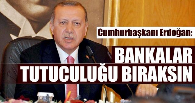 Cumhurbaşkanı Recep Tayyip Erdoğan, Kazakistan dönüşünde uçakta medya temsilcilerinin sorularını cevapladı. Bankaların kredideki tutuculuğunu aşacaklarını belirten Erdoğan, "Devlet bankaları başta olmak üzere üzerine gideceğiz. Yatırımcımızın krediye rahat erişebilmesi lazım. Böyle yüzde 15-16'lara varan faizlerle olmaz. Aşağı çekilmeli. Bu konuda sinyallerimizi verdik. Sayın Başbakanımız'la beraber ilgili bankaları konuşacağız. Diyeceğiz ki, 'Bunu aşağı çekeceksiniz, ona göre biz sürümden kazanacağız. Yatırımcıyı köşeye sıkıştırarak değil" dedi.