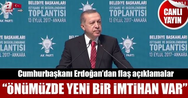 Belediye Başkanları Toplantısı'nda konuşan Cumhurbaşkanı Erdoğan, "Önümüzde yeni bir imtihan var, 2019 seçimlerinde asgari yüzde 50 artı 1 oya ulaşmayı hedefliyoruz" dedi.