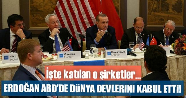 Açıklamada, Türkiye'deki yatırım ortamı, fırsatları, güncel ekonomik gelişmeler ve reformların ele alındığı toplantıya, Boeing, Citigroup, Metlife, GE, PepsiCo, Allergan, Cargill, Chevron, UBS, Blackstone, TPI, Oppenheimer, Abraaj, Coca Cola, General Atlantic ve Qinvest gibi şirketlerin tepe yöneticilerinin yanı sıra, ABD Ticaret Odası gibi kuruluşların yöneticileri de katıldığı vurgulandı.