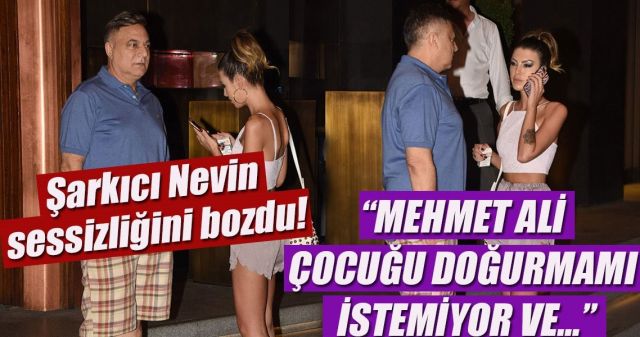 Vatan'ın haberine göre; Şarkıcı Nevin 'Hamile olduğumu 30 Ağustos'ta öğrendim. Şu an 6.5 haftalık hamileyim. Mehmet Ali çocuğu doğurmamı istemiyor. 'Bebeği hemen aldır, ben hastayım bakamam. O çocuk kaç sene baba görecek. Doğurursan senin hakkında ne söylerler' diyor.