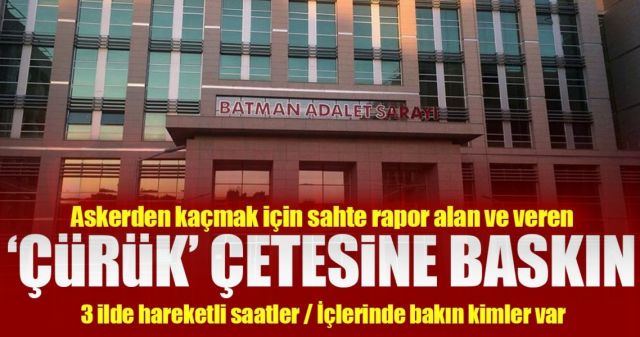 Askere gitmek istemeyenler ile gerçek hastaların kimlik bilgilerini değiştirerek sahte rapor hazırlayan şebeke üyelerine gerçekleştirilen operasyonda gözaltına alınanlar arasında askerlik şubesi çalışanlarının da olduğu öğrenildi. Gözaltına alınan şüphelilerin ifade işlemlerinden sonra adliyeye sevk edileceği öğrenildi.
