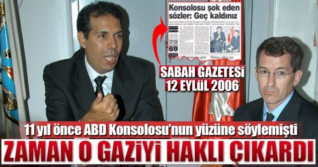 Bundan 11 yıl önce tekerlekli sandalyede karşıladığı ABD Konsolosu'nu "Gerekli askeri ve siyasi önlemleri alsaydınız, terör dünyanın başına bela olmayacak ve sizi ayakta karşılayacaktım" diyerek şoke eden gazi Murat Caner, o ziyarette yer alan ABD Konsolosluğu çalışanı Hamza Uluçay'ın şimdi PKK üyeliğinden yargılanmasıyla ilgili konuştu. "Teröre destek veren ABD'nin ikiyüzlülüğü devam ediyor" diyen gazi Caner, o zaman Eric Green'in tercümanlığını yapan ve şu anda PKK üyeliğinden tutuklu olan Hamza Uluçay'ın 11 yıl önceki ziyarette çekilen fotoğraflarını göstererek, "Uluçay'ın PKK üyeliğinden yargılanması ABD'nin terörle ilişkiler yumağını gözler önüne seriyor" dedi.