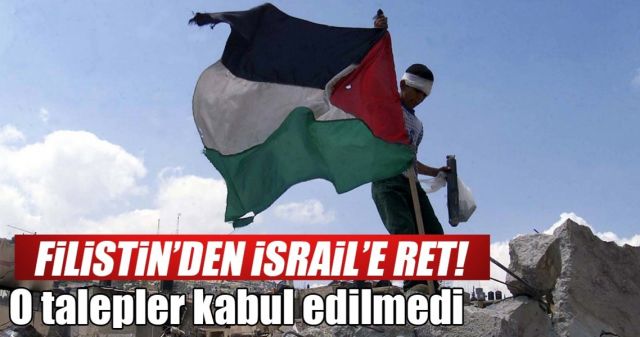 Filistin resmi haber ajansı WAFA'nın haberine göre, Devlet Başkanlığı Sözcüsü Nebil Ebu Redine, İsrail'in Filistin yönetimi ile barış müzakerelerine başlamak için öne sürdüğü şartları kabul etmediklerini duyurdu.