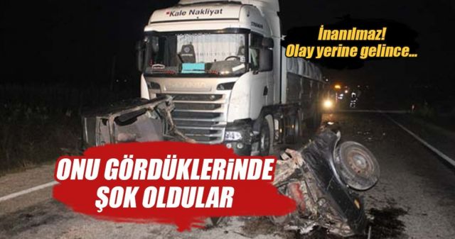 Çanakkale'nin Ezine ilçesinde, tırla çarpıştıktan sonra ikiye bölünen Otomobilin sürücüsü ile kazaya karışan kamyonetteki iki kişi yaralandı.
