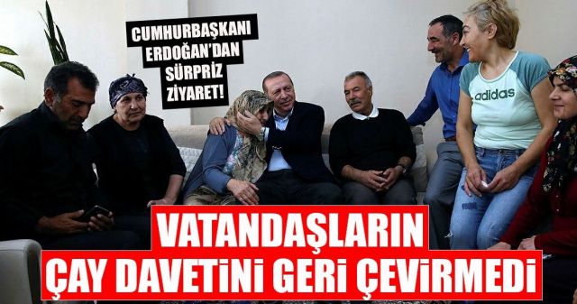 Evde bulunan bir gencin Galatasaray forması giydiğini gören Erdoğan, "Ama sizin bu çocuk Galatasaraylı ha. Bu akşam bizim başımız dertte." dedi.