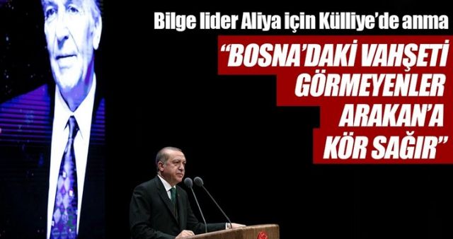 Bosna Hersek'in kurucusu ve ilk Cumhurbaşkanı "Bilge Lider" merhum Aliya İzzetbegoviç'in 14. ölüm yıldönümü nedeniyle Beştepe Millet Kongre ve Kültür Merkezi'nde anma töreni düzenledi. Törene Cumhurbaşkanı Erdoğan ve eşi Emine Erdoğan, İzzetbegoviç'in oğlu Bosna Hersek Başkanlık Konseyi Üyesi Bakir İzzetbegoviç ve eşi Semiha İzzetbegoviç katıldı. Erdoğan'ın konuşmasından satırbaşları şöyle: