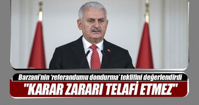 Başbakan Binali Yıldırım dün Çankaya Köşkü'nde Somali Başbakanı Hasan Ali Hayri ile görüştü. İkili ve heyetler arası görüşmelerin ardından iki lider ortak basın toplantısı düzenledi.Yıldırım Barzani'nin referandumu dondurma teklifine ilişkin gazetecilerin sorularını yanıtladı. Yıldırım şunları söyledi: