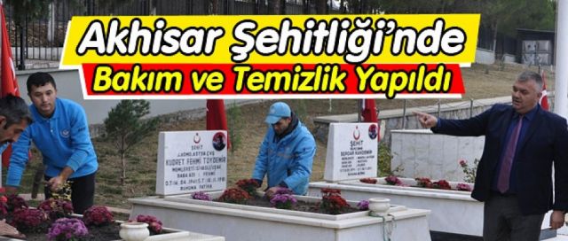 Manisa Büyükşehir Belediyesi, Akhisar’da bulunan şehitlikte bakım ve temizlik çalışması yaptı. Şehitlerimizin mezarları tek tek temizlenirken, çevre düzenlemesi yapılan şehitlikte çiçek ekimi ve çim bakımı yapıldı.